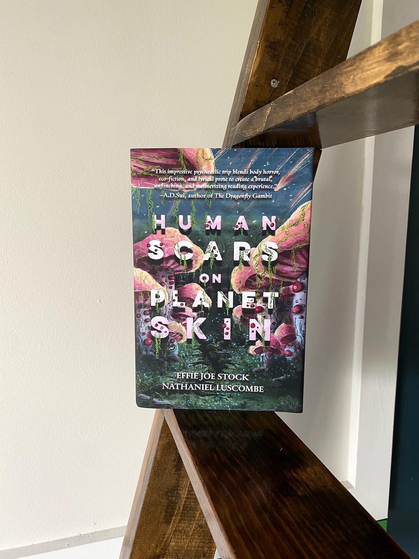 Today I’m celebrating the release of Human Scars on Planet Skin, a strange sci-fi horror novel that I wrote with one of my best friends Effie Joe Stock.